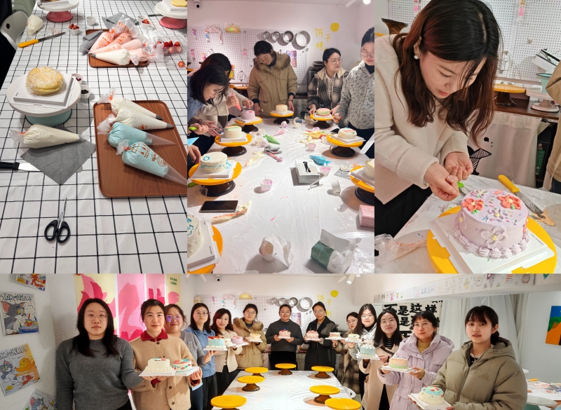 午后,開啟“甜蜜烘焙時(shí)光”。烘焙現(xiàn)場(chǎng),各種烘焙材料和工具整齊地?cái)[放在操作臺(tái)上,等待著大家的創(chuàng)意和巧手。在烘焙老師的指導(dǎo)下,大家分組體驗(yàn)蛋糕裱花、手繪創(chuàng)作等烘焙項(xiàng)目,忙得不亦樂乎。雖然是第一次嘗試烘焙,但在老師的耐心講解和示范下,她們很快掌握了基本的技巧。隨著時(shí)間的推移,一個(gè)個(gè)造型獨(dú)特、色彩繽紛的烘焙作品逐漸呈現(xiàn)在眼前。從手忙腳亂到漸入佳境,從普通面胚到精致甜點(diǎn),大家在動(dòng)手實(shí)踐中收獲了成就感與快樂。大家互相展示著自己的作品,分享著烘焙過(guò)程中的趣事和心得,現(xiàn)場(chǎng)充滿了歡聲笑語(yǔ)。完成的作品將被裝盒帶回家,為家人、朋友、同事送上特別的驚喜。