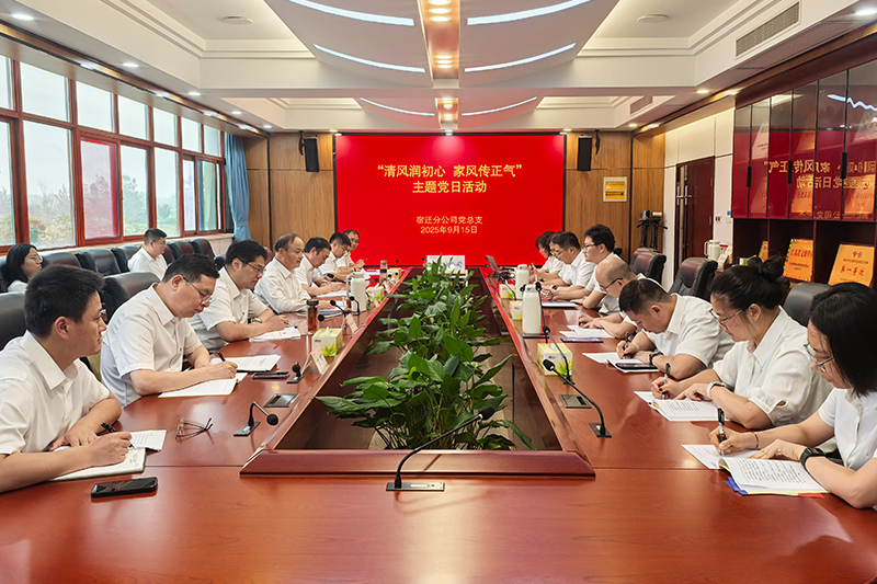 根據(jù)公司關(guān)于開展廉潔文化宣傳教育月活動(dòng)的通知要求,為深入學(xué)習(xí)貫徹習(xí)近平總書記關(guān)于注重家庭家教家風(fēng)建設(shè)的重要論述,進(jìn)一步強(qiáng)化黨員干部廉潔修身、廉潔齊家意識(shí),充分發(fā)揮家庭在黨風(fēng)廉政建設(shè)中的積極作用,構(gòu)筑拒腐防變的家庭防線,以好家風(fēng)涵養(yǎng)好作風(fēng),助力分公司高質(zhì)量發(fā)展,9月15日,宿遷分公司組織開展“清風(fēng)潤(rùn)初心 家風(fēng)傳正氣”主題黨日活動(dòng)。宿遷分公司黨總支委員、領(lǐng)導(dǎo)班子成員,各支部、各部門、水文水質(zhì)中心、泗洪站管理所黨員及入黨積極分子參加活動(dòng)。