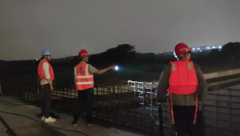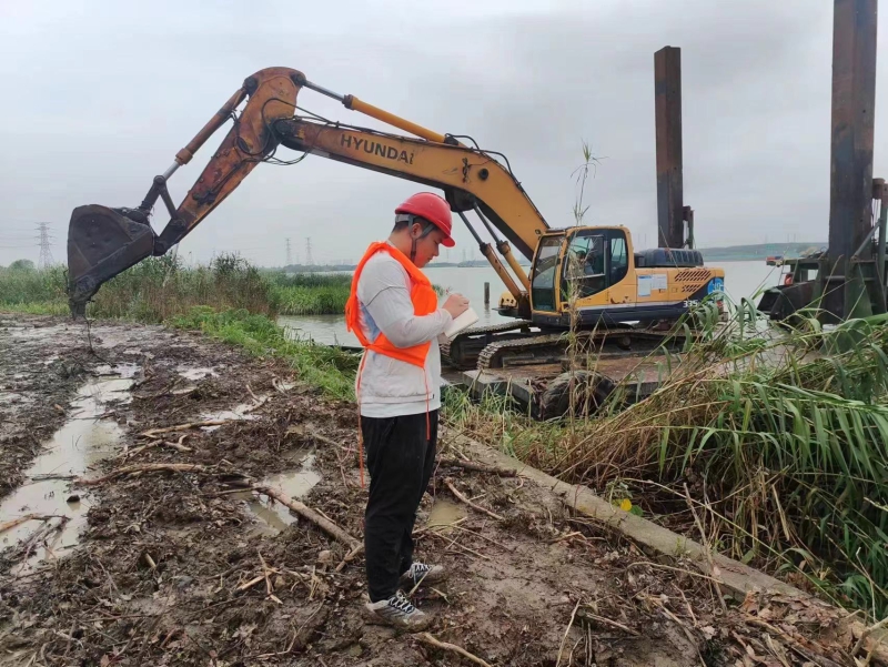 安全是工程順利進行的基石。自6月下旬入梅以來,蘇州地區(qū)極端天氣頻發(fā),蘇州市、昆山市兩級政府多次發(fā)布暴雨、強對流天氣預警信息,6月30日,防汛應急響應升級為III級。在連日暴雨與支河排澇的共同壓力下,吳淞江水位超4米,順河圍堰有漫頂風險。技術服務組迅速響應,發(fā)出梅雨期間安全度汛和強降雨天氣應急響應的通知,啟動超標準洪水應急預案。嚴格落實值班巡視要求,組建應急搶險隊伍加固圍堰,并加強搶險物資設備保障。全面排查施工現場安全隱患,分時段、分地點與值班巡視組聯合開展水位、圍堰變形觀測工作,突出重點檢查建設項目臨時圍堰、臨時用電等,對發(fā)現的問題立行立改,消除安全隱患。