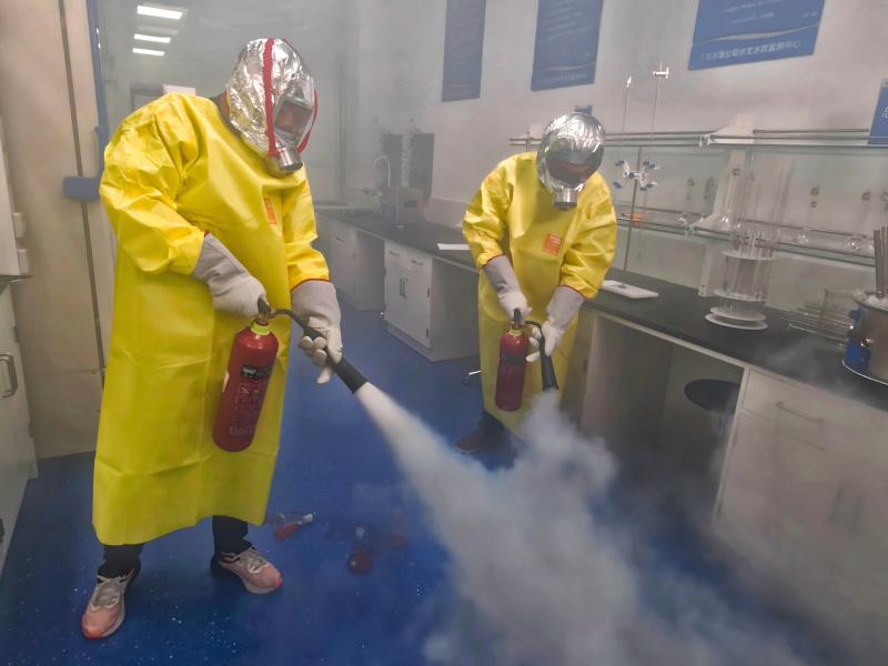 演練模擬無機(jī)前處理室總氮檢測(cè)實(shí)驗(yàn)過程中,因立式壓力滅菌器壓力與溫度控制系統(tǒng)異常出現(xiàn)超壓預(yù)警,致使少量易燃試劑泄漏并引發(fā)初期火情,1名操作人員發(fā)生輕微灼燙傷,場(chǎng)景設(shè)定構(gòu)建起“設(shè)備異常預(yù)警—試劑微量泄漏—初期火情處置”的全鏈條事故模型,精準(zhǔn)對(duì)標(biāo)實(shí)驗(yàn)室高風(fēng)險(xiǎn)操作環(huán)節(jié),重點(diǎn)檢驗(yàn)事故初發(fā)階段的應(yīng)急響應(yīng)能力,還原真實(shí)安全事故處置場(chǎng)景。